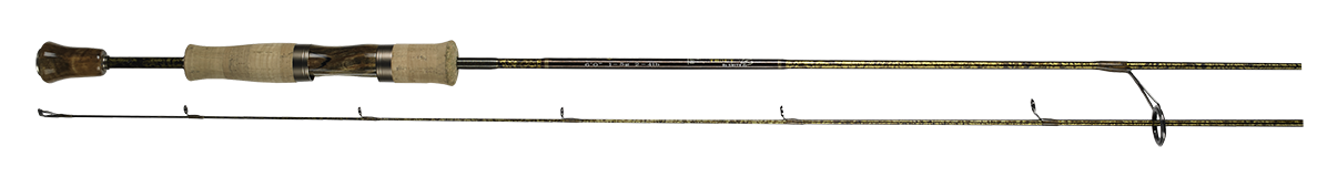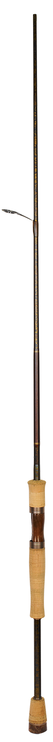 Canne esthétiquement très belle. Se manie plus sèchement, elle est plus d' action de pointe et convient parfaitement à des leurres coulant rapidement comme les D-CONTACT. Le porte moulinet en érable à pour but de par son poids de descendre le point d' équilibre ce qui permet de raccourcir la poignée facilitant ainsi les mouvements du poignet.