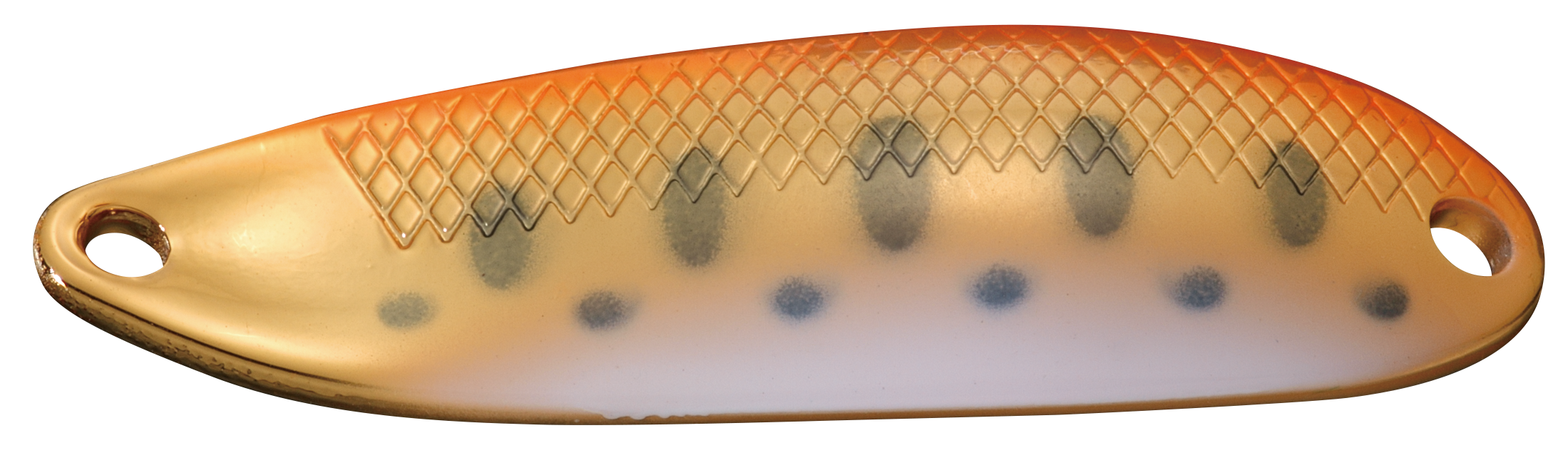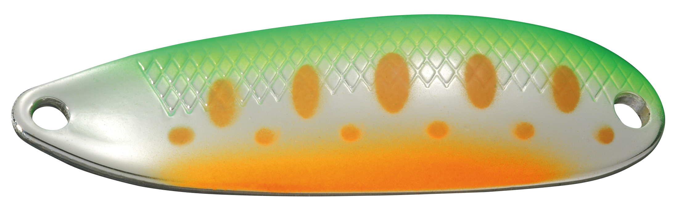 Sa forme en S relevée au niveau de l' oeillet d' accroche permet une nage lente : contrastée dans l' amplitude entre l' avant er arrière. Les points fluo à l' intérieur du galbe permettent de suivre son évolution. Son épaisseur de 1,2 MM convient à un cours d' eau relativement lent.