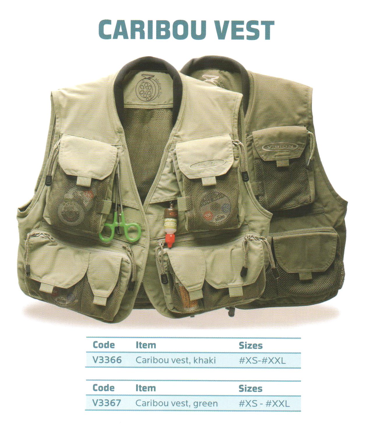 REF. V3366 KAKI - REF. V3367 GREEN Le gilet Caribou dispose de nombreuses poches, toutes bien positionnées et équipées de fermetures à glissière haute qualité ou velcro. La couche extérieure en nylon est durable et très résistante à l'eau. Les épaules ont une couche supplémentaire en un matériau flexible poreux qui distribue parfaitement le poids....